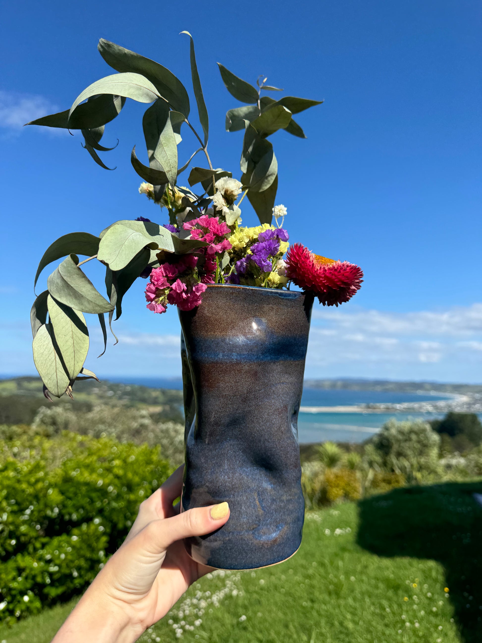 Tall Squish Vase- Deep Ocean Blue